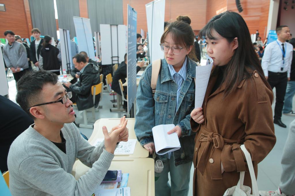 招聘会现场吸引约2100余名学生入场咨询、求职应聘,初步达成就业意向188人,成功面试并签订就业协议36人,待面试人员152人。会场同步开展线上“直播带岗”活动,26家企业线上参与,累计吸引5万余人在线观看。