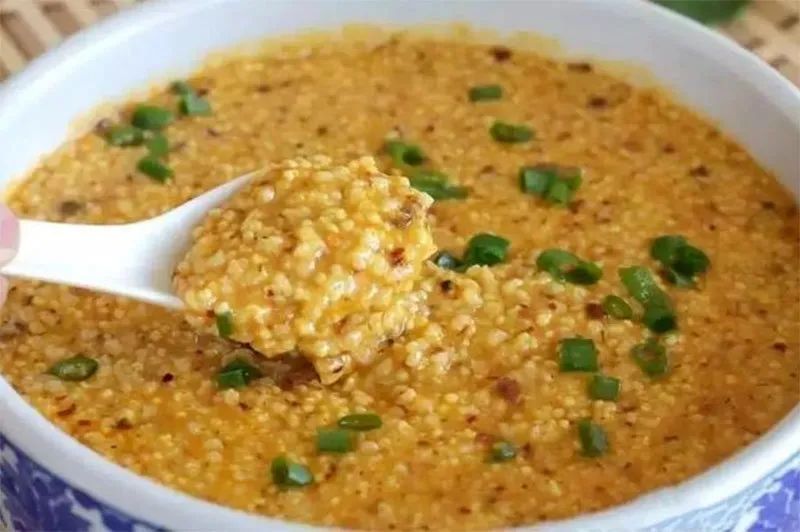 ▲准格尔旗的酸粥,将发酵好的糜米和酸汤一起下入锅中,小火慢熬、再搭上红腌菜、扎蒙油、辣椒酱、西红柿酱等调料,是准格尔人生活中不可缺少的一部分。(图片来源:央视网)