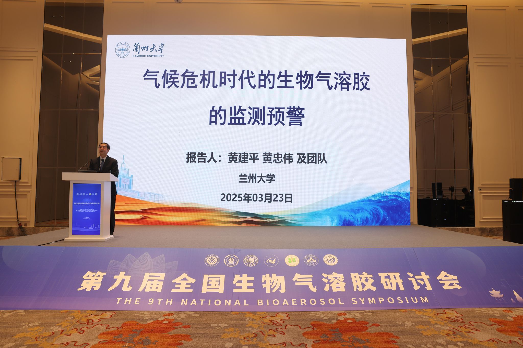 在大会闭幕式环节,兰州大学黄建平院士做了题为《气候危机时代生物气溶胶的监测预警》报告,介绍了人类在气候变化下面临着的疾病传播风险。中国疾病预防控制中心环境所唐宋研究员主持青年学者优秀报告和研究生优秀墙报颁奖环节。最后,在隆重的会旗交接仪式中,会旗授予第十届承办单位大连理工大学代表刘猛教授,标志着学术火炬的延续。