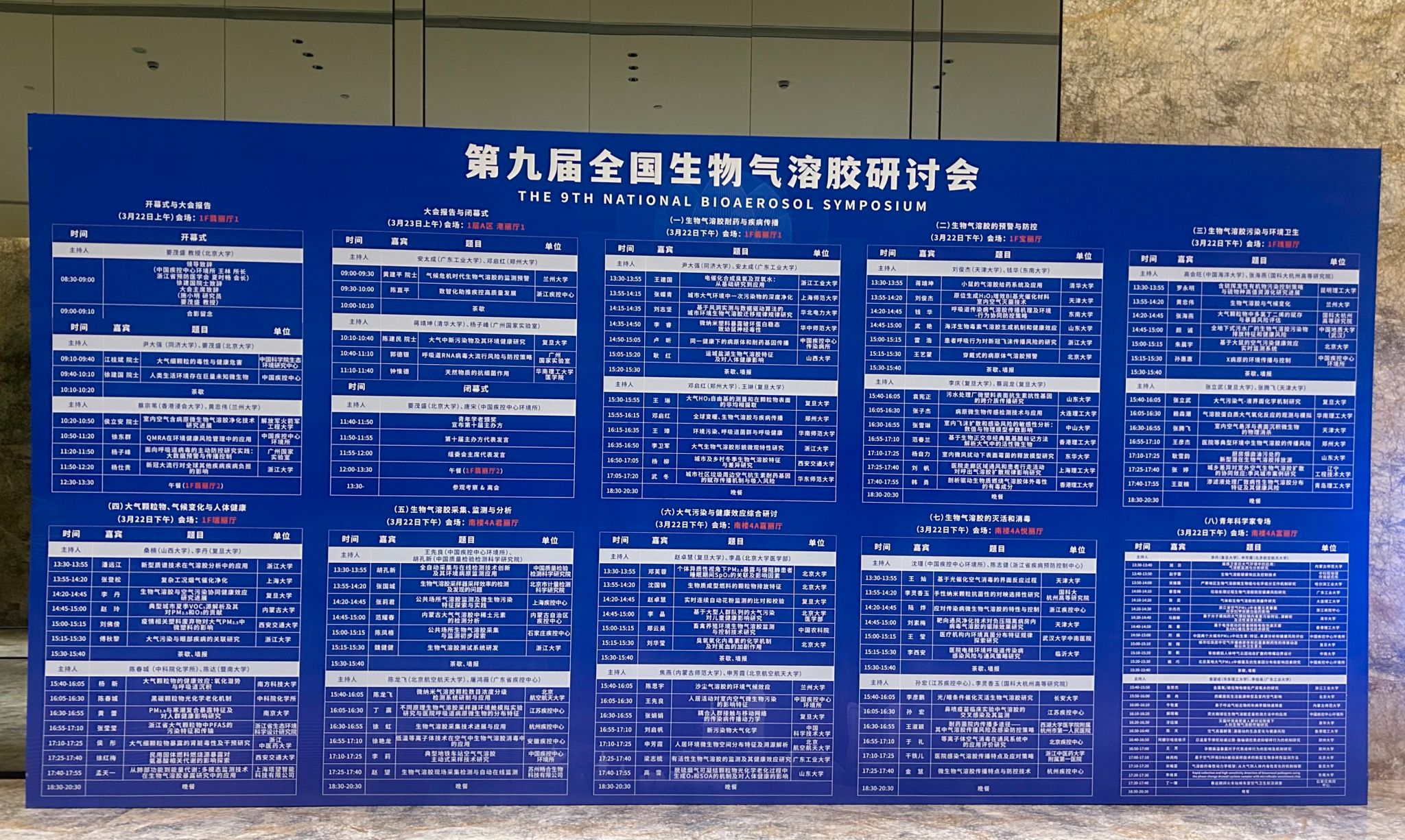本次大会共安排了4个会前培训报告、11个大会报告、7个报告分会场、1个青年科学家专场和1个墙报主题会场,围绕生物气溶胶与疾病传播,生物气溶胶的预警与防控,生物气溶胶污染与环境卫生,大气颗粒物、气候变化与人体健康,生物气溶胶采集、监测与分析大气污染与健康效应综合研讨,以及生物气溶胶的灭活和消毒方面展开深入研讨。