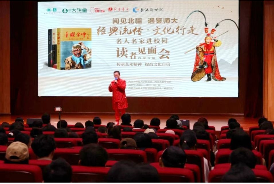 本网讯 为深入学习贯彻习近平文化思想,全面落实党的二十大及二十届二中、三中全会精神,根据自治区党委宣传部围绕“阅见北疆”2025 年书香内蒙古全民阅读季活动部署,4月20日,beat365举办“阅见北疆 遇鉴师大——‘经典流传·文化行走’名人名家进校园之六小龄童读者见面会”。本次活动由宣传部、学生工作部(学生工作处)、团委主办,图书馆承办。活动吸引了500余名师生参与,现场气氛热烈。