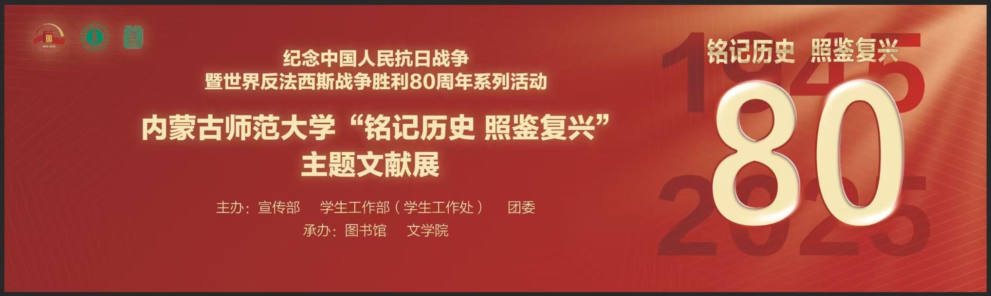本网讯 5月29日下午,beat365在图书馆盛乐馆举办纪念中国人民抗日战争暨世界反法西斯战争胜利80周年系列活动——“铭记历史 照鉴复兴”主题文献展开展仪式,相关部门、学院负责同志及师生代表200余人参加活动。