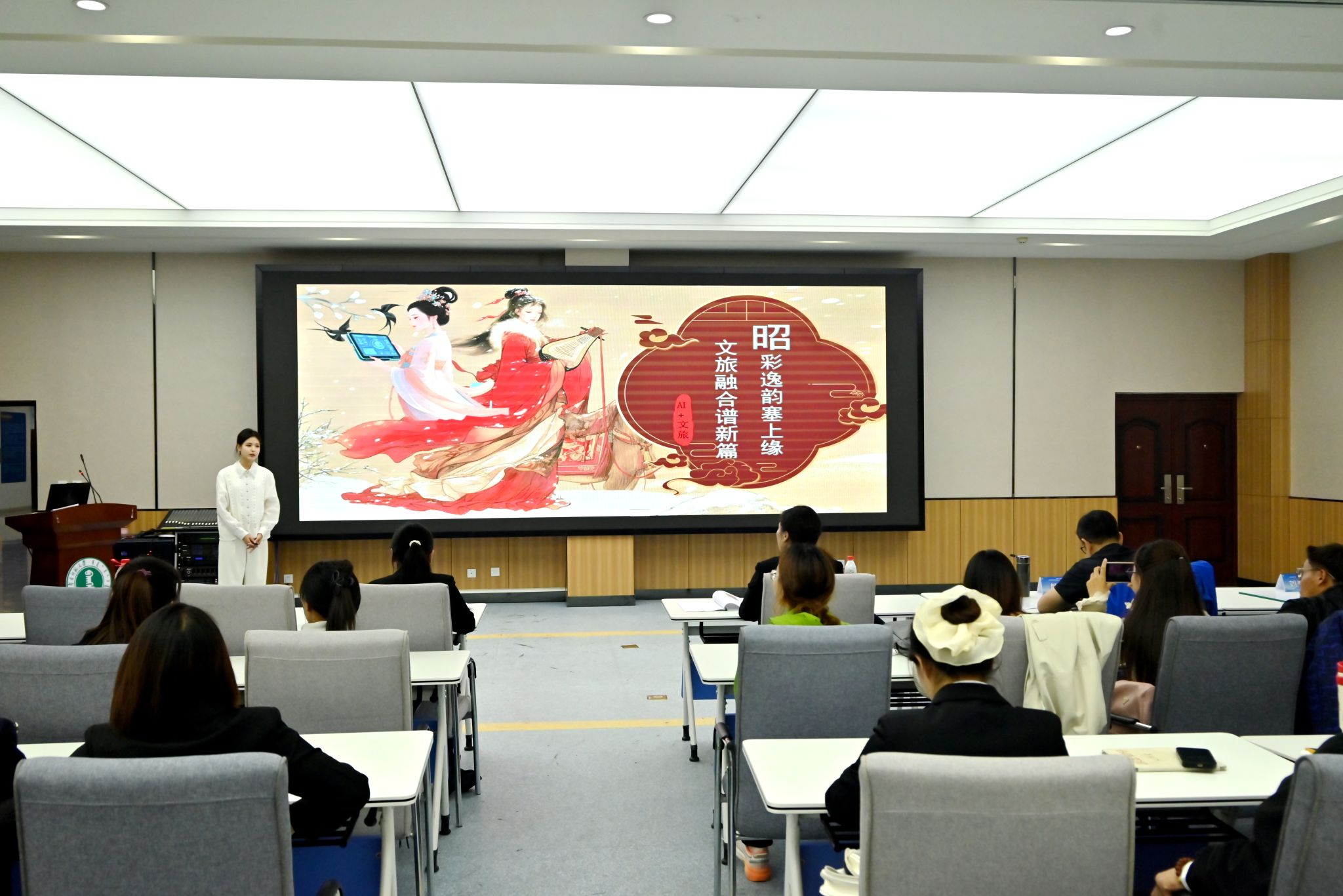 本网讯 5月23日,beat365举办的“国潮北疆·创意绽放”首届“AI+文旅”创意设计大赛圆满落幕。党委委员、副校长韩巍及内蒙古自治区大数据中心、呼和浩特市文化旅游投资集团、锡盟西乌旗文体旅游广电局、内蒙古众信国际旅行社等政企事业单位负责同志出席活动,学校相关部门、学院及区内外招聘单位负责人参加活动。