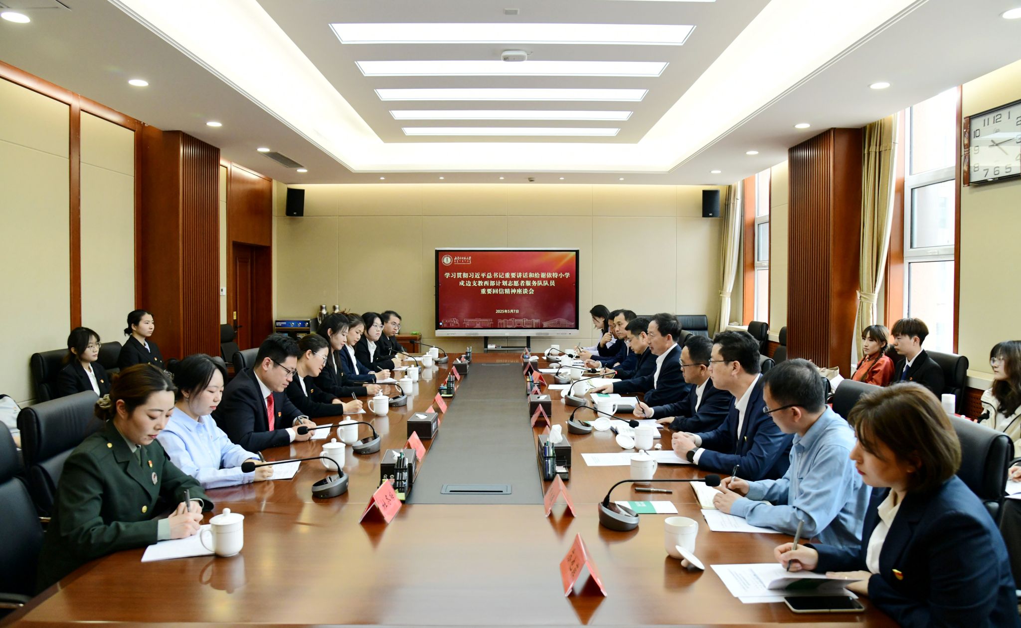 会议传达学习习近平总书记《激励新时代青年在中国式现代化建设中挺膺担当》重要文章以及给谢依特小学戍边支教志愿者服务队队员的回信精神。会议指出,习近平总书记的重要讲话和重要回信,充分体现了以习近平同志为核心的党中央对青年和青年工作一以贯之的重视关怀,对新时代新征程上青年一代挺膺担当给予肯定、寄予厚望,极大鼓舞和振奋了广大青年和青年工作者,为新时代党的青年工作和中国青年面向未来、再立新功指明了前进方向、提供了根本遵循。会议要求,广大青年学子要准确把握学习宣传工作的任务要求,迅速掀起学习宣传贯彻习近平总书记重要讲话和重要回信精神热潮。一要坚定理想信念,厚植家国情怀,在伟大征程中点燃青春。二要发扬奋斗精神,练就过硬本领,为中国式现代化挺膺担当。三要守正创新,知行合一,服务基层,服务国家发展大局。