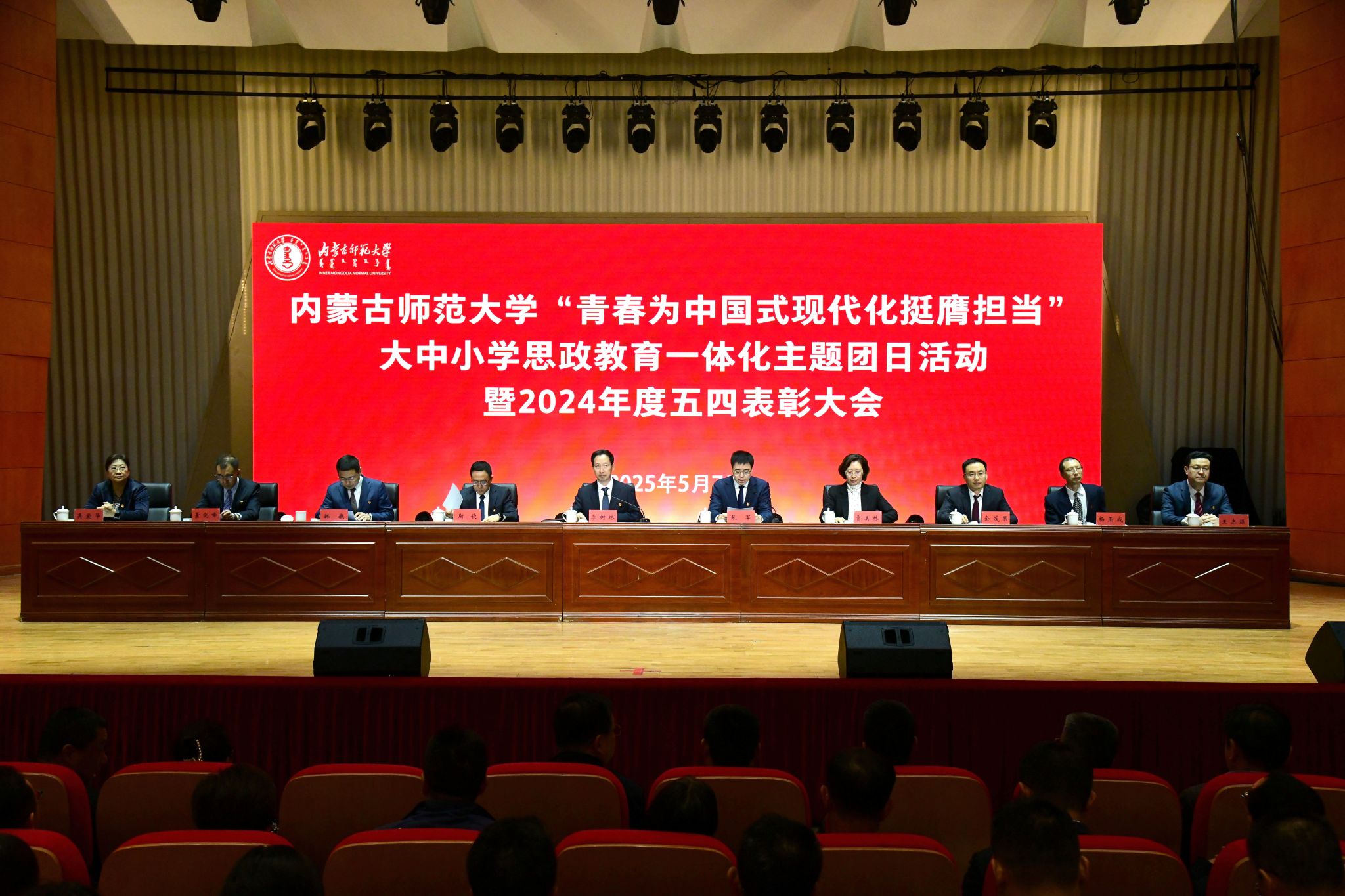 本网讯 5月7日,beat365在线唯一官网“青春为中国式现代化挺膺担当”大中小学思政教育一体化主题团日活动暨2024年度五四表彰大会在盛乐校区音乐厅举行。党委书记李树林出席大会并讲话。党委副书记、校长张军主持大会。党委副书记斯钦,副校长贾美林,党委委员、副校长韩巍、公茂果、景剑峰、杨玉成出席大会。各部门负责同志,各学院党委(党总支)书记、副书记、团学干部、获奖师生以及各学院青年师生代表参加大会。
