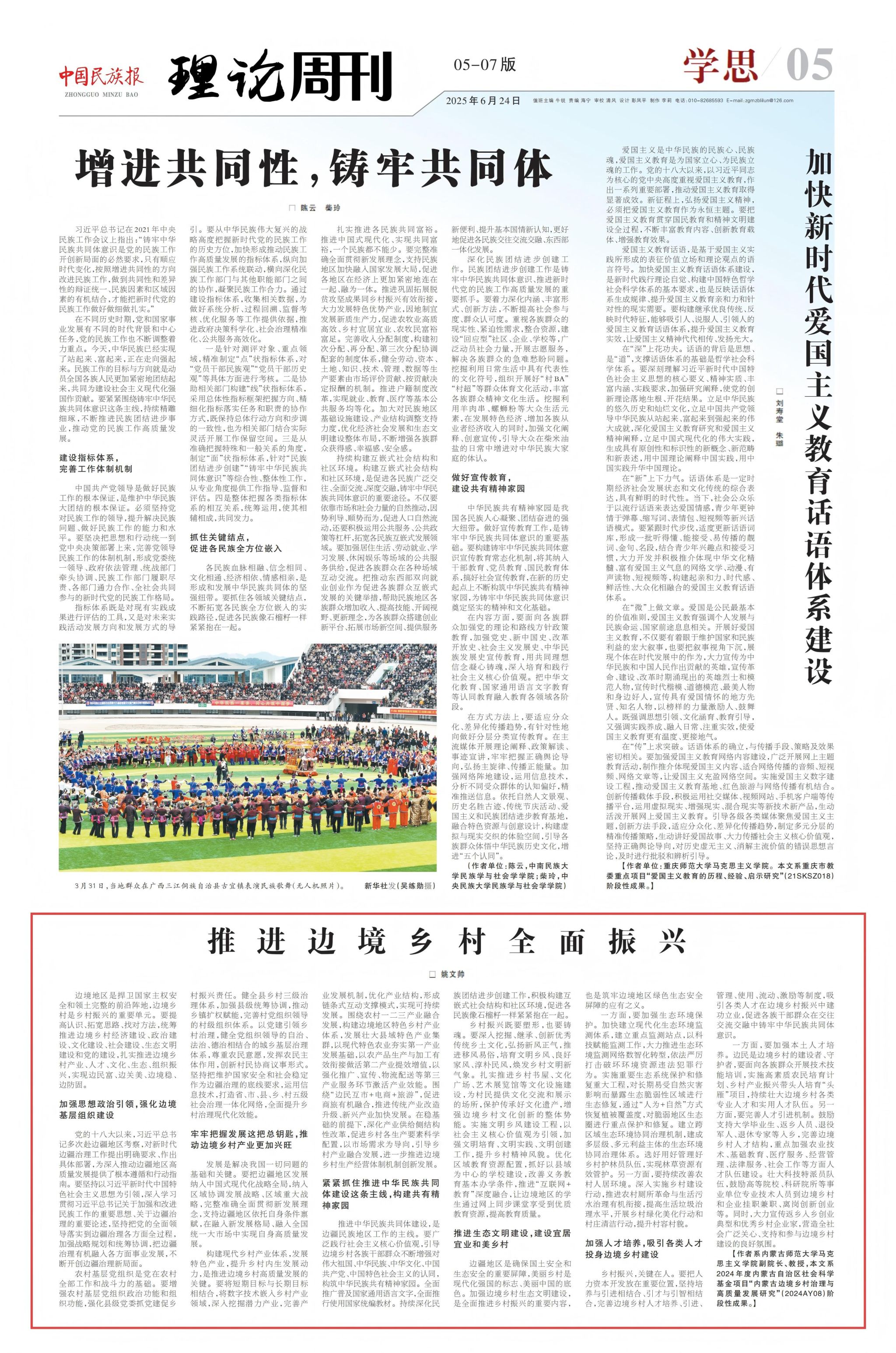 《中国民族报》2025年6月24日第5版发表beat365马克思主义学院教师文章《推进边境乡村全面振兴》