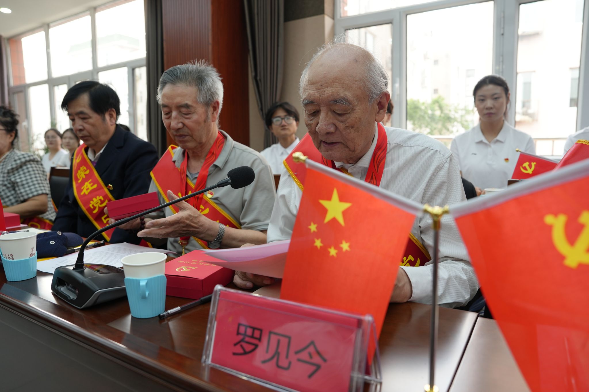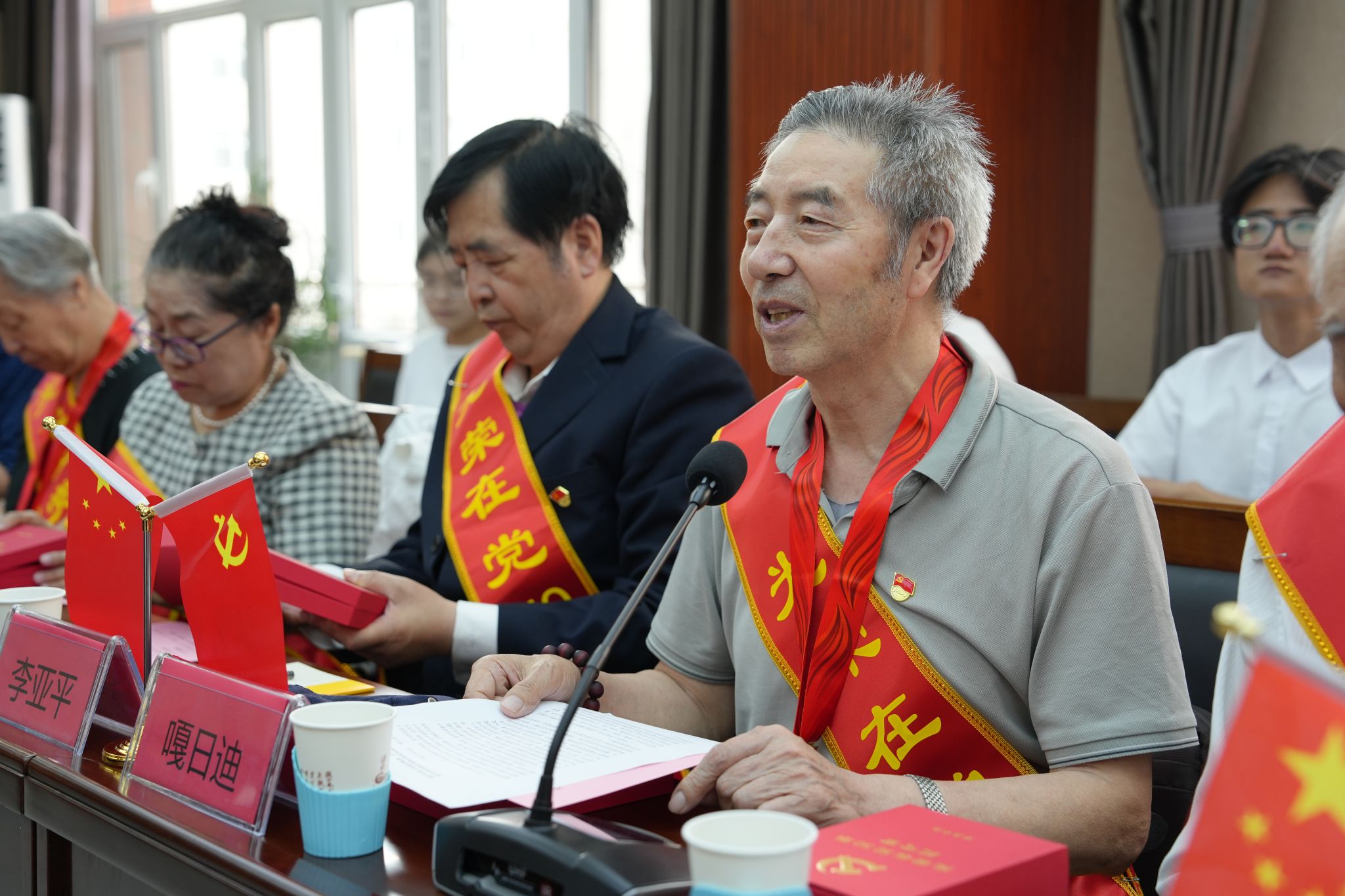 嘎日迪、罗见今、李斐作为老党员代表作了交流发言,满怀深情地讲述了入党初心和在党五十年的奋斗历程。老党员们纷纷表示,五十年的成长和进步,是在党的培养和教育下取得的,日后定将更加紧密地团结在以习近平同志为核心的党中央周围,继续发挥余热,将党的光荣传统和优良作风代代相传。