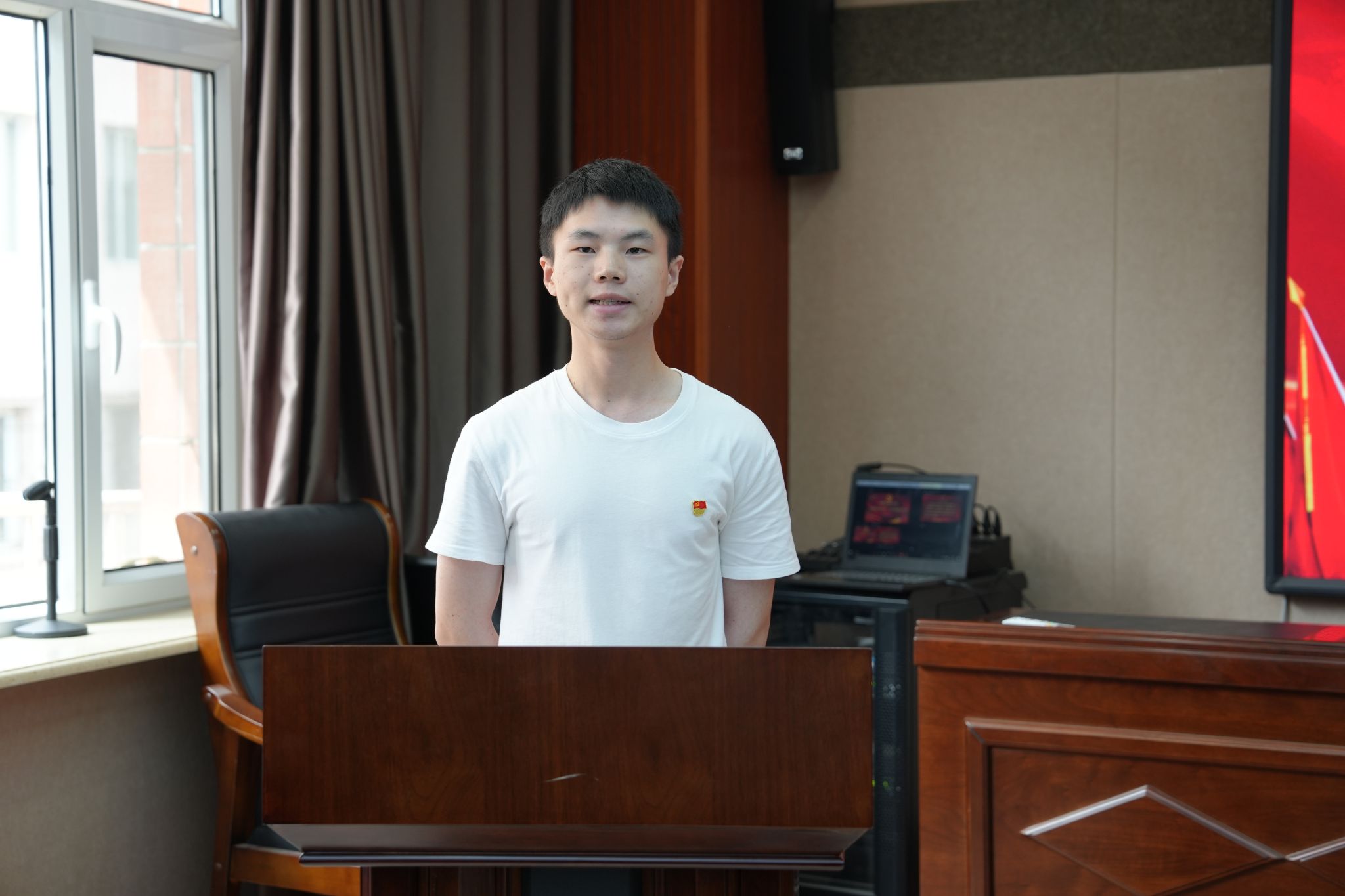 新党员代表、马克思主义学院学生罗武铉在发言中表示,聆听了老党员们在党50年的光荣历程,更加为加入中国共产党感到无比光荣和自豪,今后将以老党员们为榜样,扎根教育事业,在新时代新征程中书写内师人奋进新篇章。