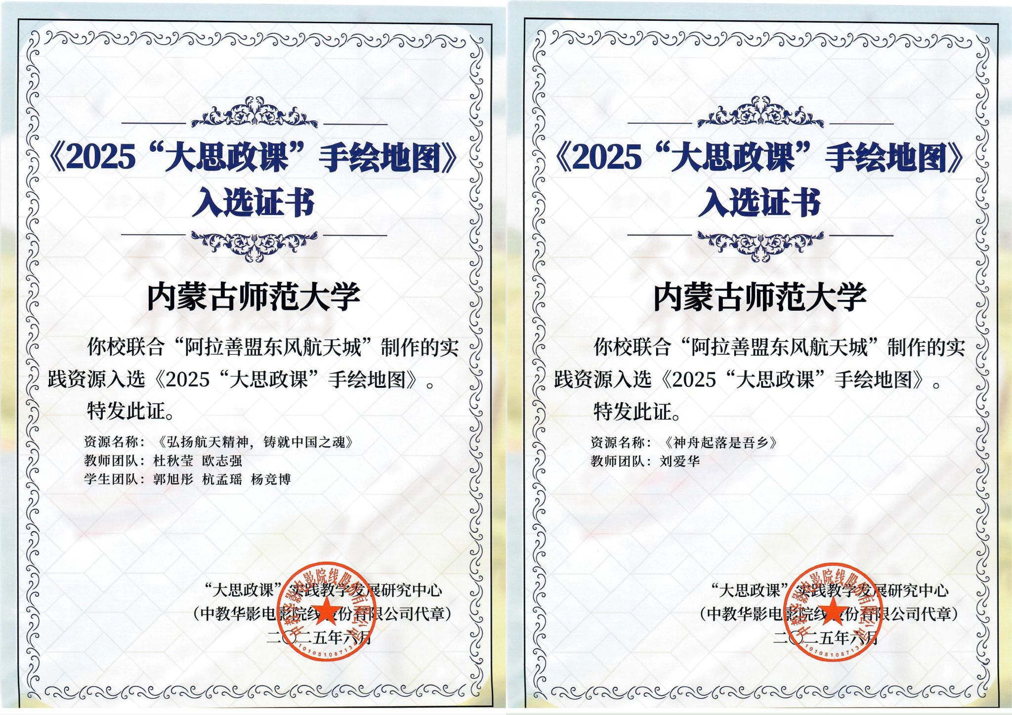 团队紧扣习近平总书记对思政课建设的重要指示精神,以“东风航天城”这一国家航天事业重要基地为实践载体,通过实地采风、史料挖掘和艺术创作,将航天精神、民族团结与边疆发展等思政元素融入作品。6份提交作品中,既有航天科技成就的生动呈现,也有内蒙古自治区在筑牢祖国北疆安全屏障中的时代担当,为全国思政课教学提供了兼具地域特色与时代内涵的优质资源。