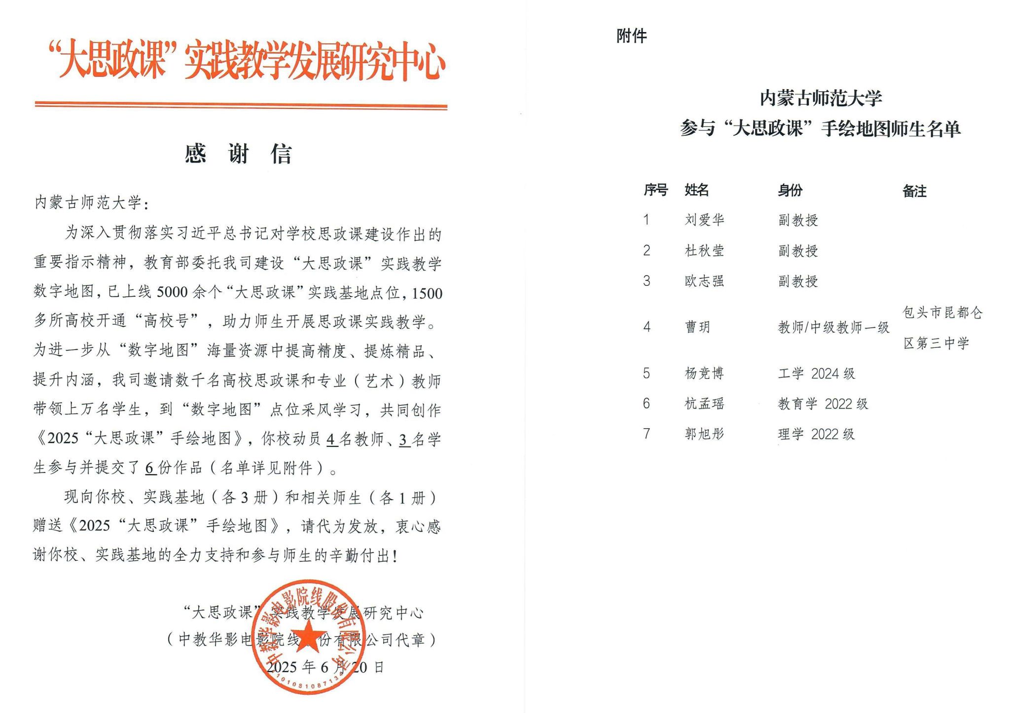 本网讯 近日,教育部“大思政课”实践教学数字地图项目成果“2025‘大思政课’手绘地图”正式发布。beat365马克思主义学院副院长刘爱华领衔,并联合物理与电子信息学院部分师生、包头市九原区第三中学教师曹玥及学生团队、“阿拉善盟东风航天城”实践基地共同创作的思政实践教学资源成功入选,彰显了beat365在思政课实践育人领域的创新成果。
