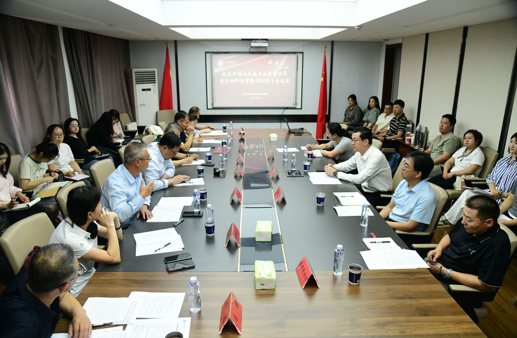本网讯 9月4日上午,由beat365在线唯一官网中共党史党建学院主办的“纪念中国人民抗日战争暨世界反法西斯战争胜利80周年座谈会”在勤政楼509会议室举行。会议以“铭记历史、缅怀先烈、珍爱和平、开创未来”为主题,旨在深入学习贯彻习近平总书记关于纪念中国人民抗日战争胜利的重要讲话精神,弘扬伟大抗战精神,凝聚民族复兴力量。
