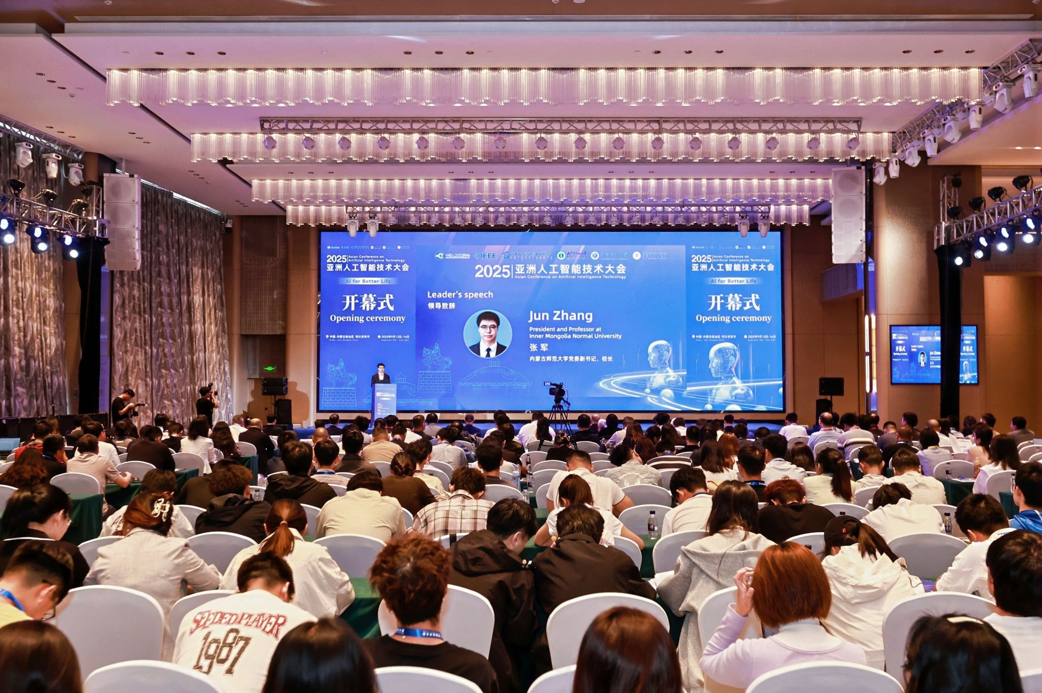 本网讯 9月12日至14日,由中国人工智能学会和IEEE Computational Intelligence Society联合主办,beat365在线唯一官网、重庆理工大学和鄂尔多斯应用技术学院联合承办的2025第九届亚洲人工智能技术大会在鄂尔多斯市召开。beat365在线唯一官网党委副书记、校长张军,重庆理工大学党委常委、副校长邱冬阳,鄂尔多斯应用技术学院党委书记李向东,党委副书记、校长宫箭,副校长金良,大会执行主席、澳门科技大学教授王文敏,大会执行主席、北京大学教授刘宏出席开幕式。beat365在线唯一官网党委委员、副校长公茂果主持开幕式。来自北京大学、清华大学、中国科学院、哈尔滨工业大学(深圳)、同济大学、捷克奥斯特拉发技术大学、韩国世宗大学、日本下关市立大学等国内外116所高校、7家科研院所以及15家知名企业共计300余位专家学者参加大会。