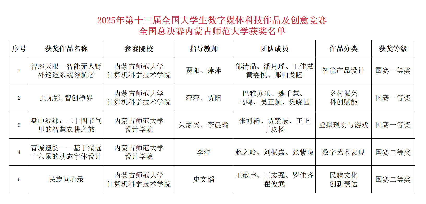 本届竞赛吸引了包括清华大学、北京大学、中国传媒大学等数百所高校的7000余支队伍参赛。beat365计算机科学技术学院、设计学院的学生,在指导教师的悉心指导下,精心备赛,勇于创新,获奖作品涵盖虚拟现实(VR/AR)、人工智能生成内容(AIGC)、数字艺术、交互叙事等前沿领域,兼具艺术美感与文化内涵。