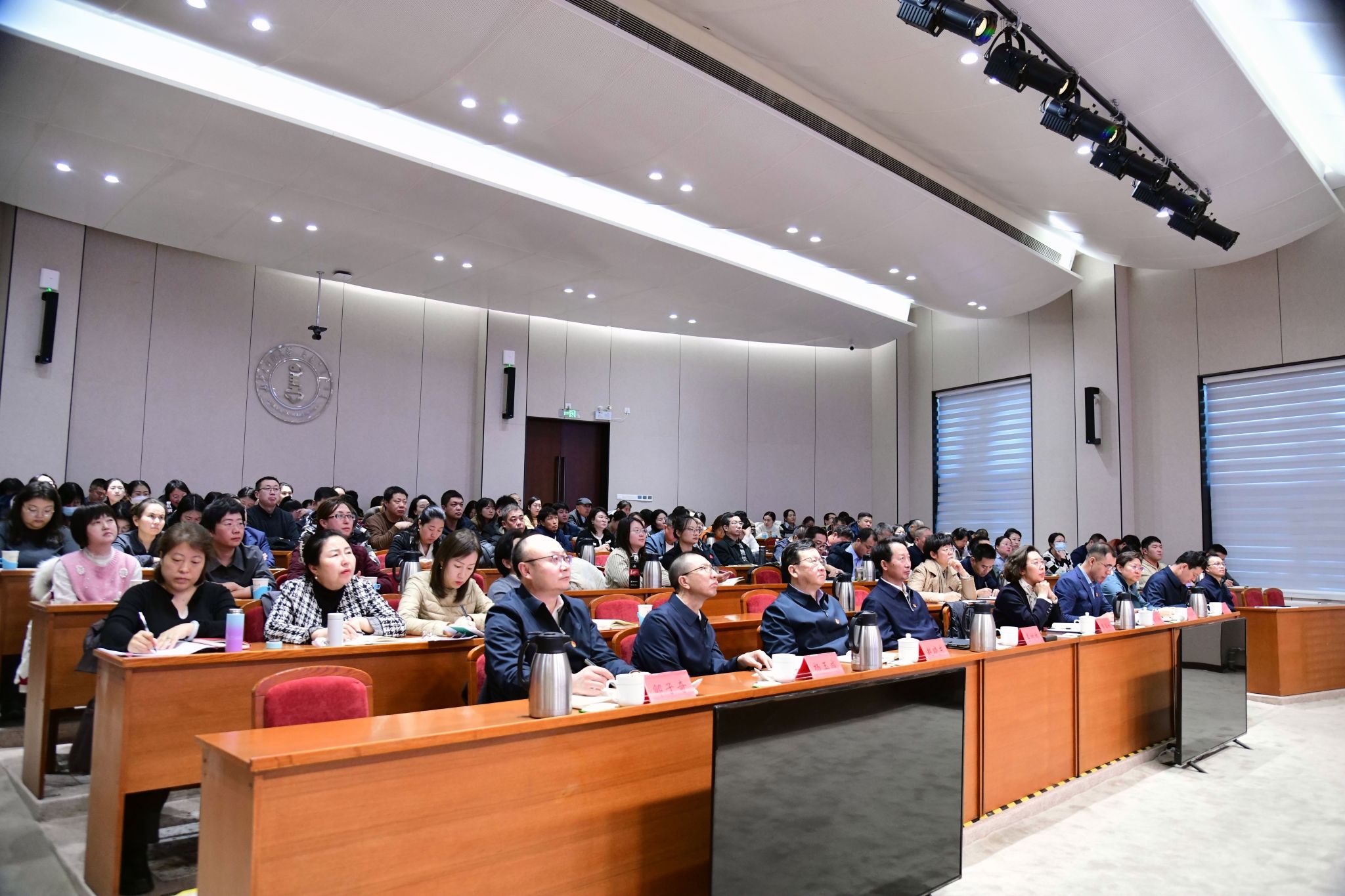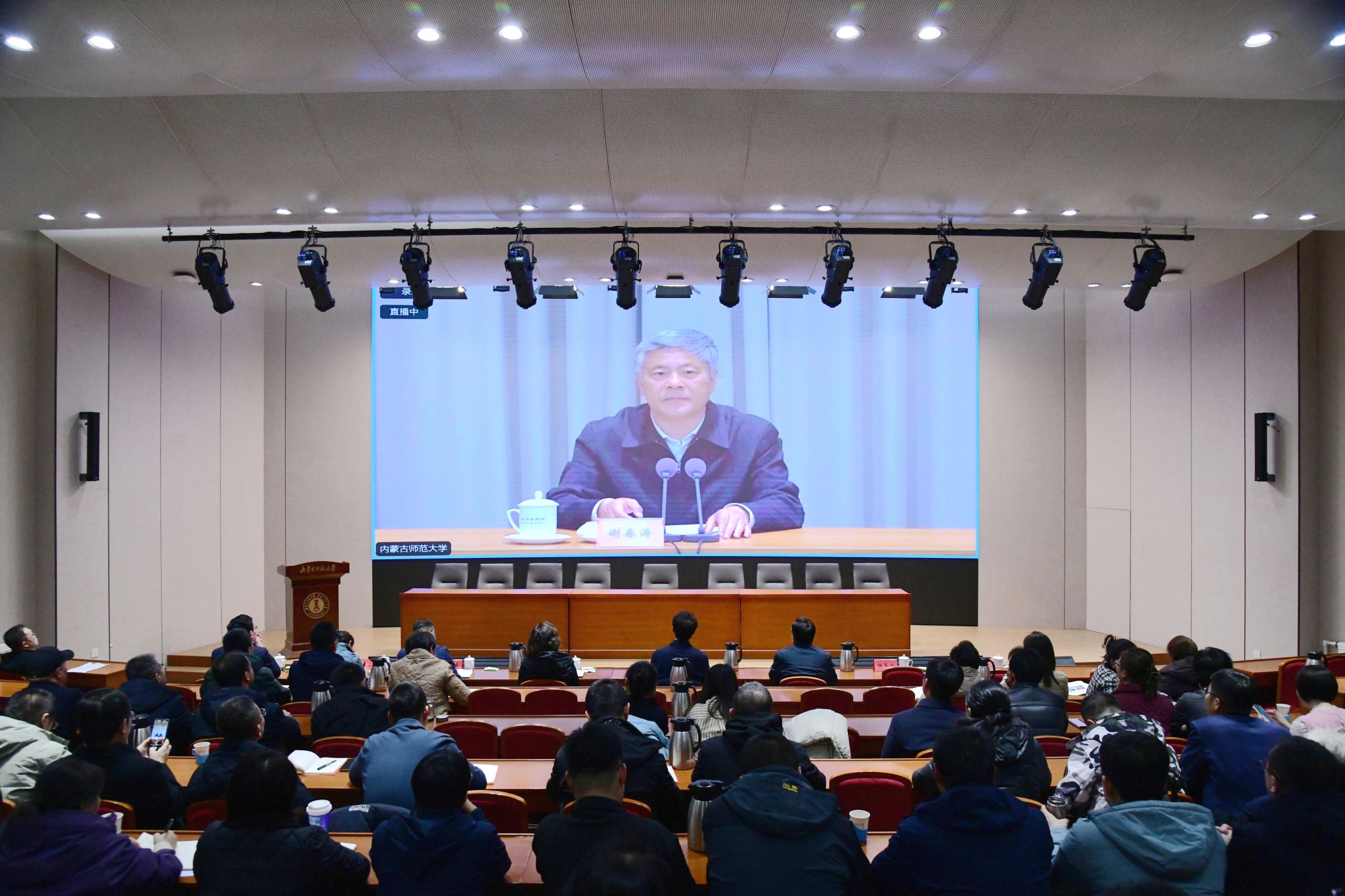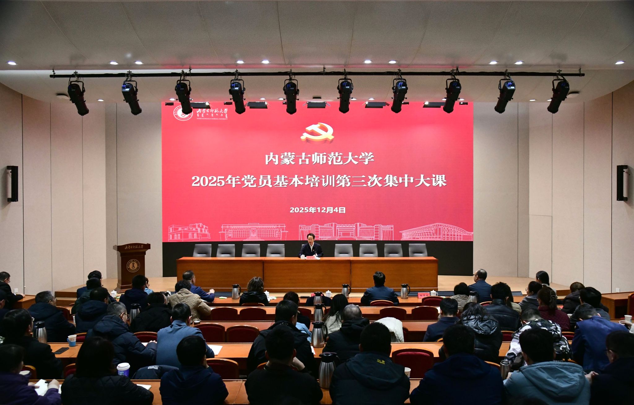 本网讯 12月4日下午,beat365在线唯一官网在赛罕校区学术交流中心报告厅组织开展2025年党员基本培训第三次集中大课。5000余名党员在两校区51个会场集体观看学习中央党校(国家行政学院)分管日常工作的副校长(副院长)谢春涛主讲的“中国共产党与中华民族伟大复兴”专题辅导报告。校党委书记李树林作动员讲话。自治区党委教育工委组织部有关同志列席会议。