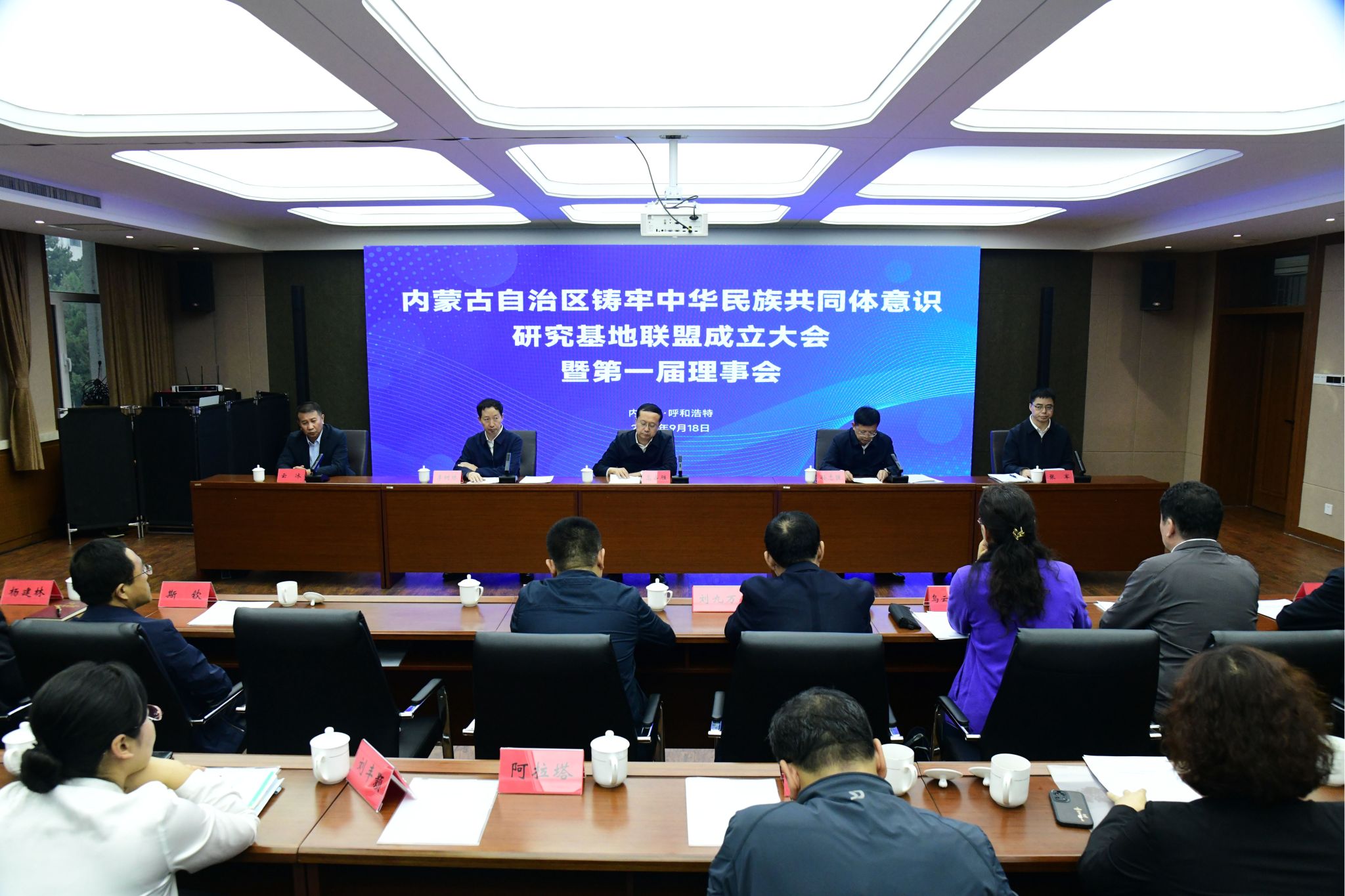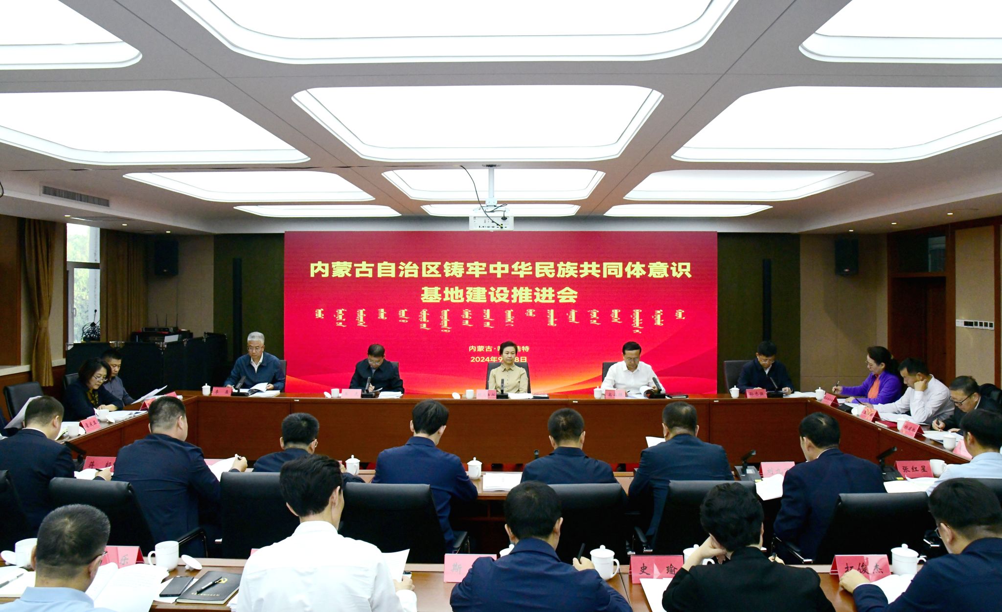 2024年9月18日下午,内蒙古自治区铸牢中华民族共同体意识基地建设推进会在beat365在线唯一官网召开,内蒙古自治区铸牢中华民族共同体意识研究中心在会上成立。