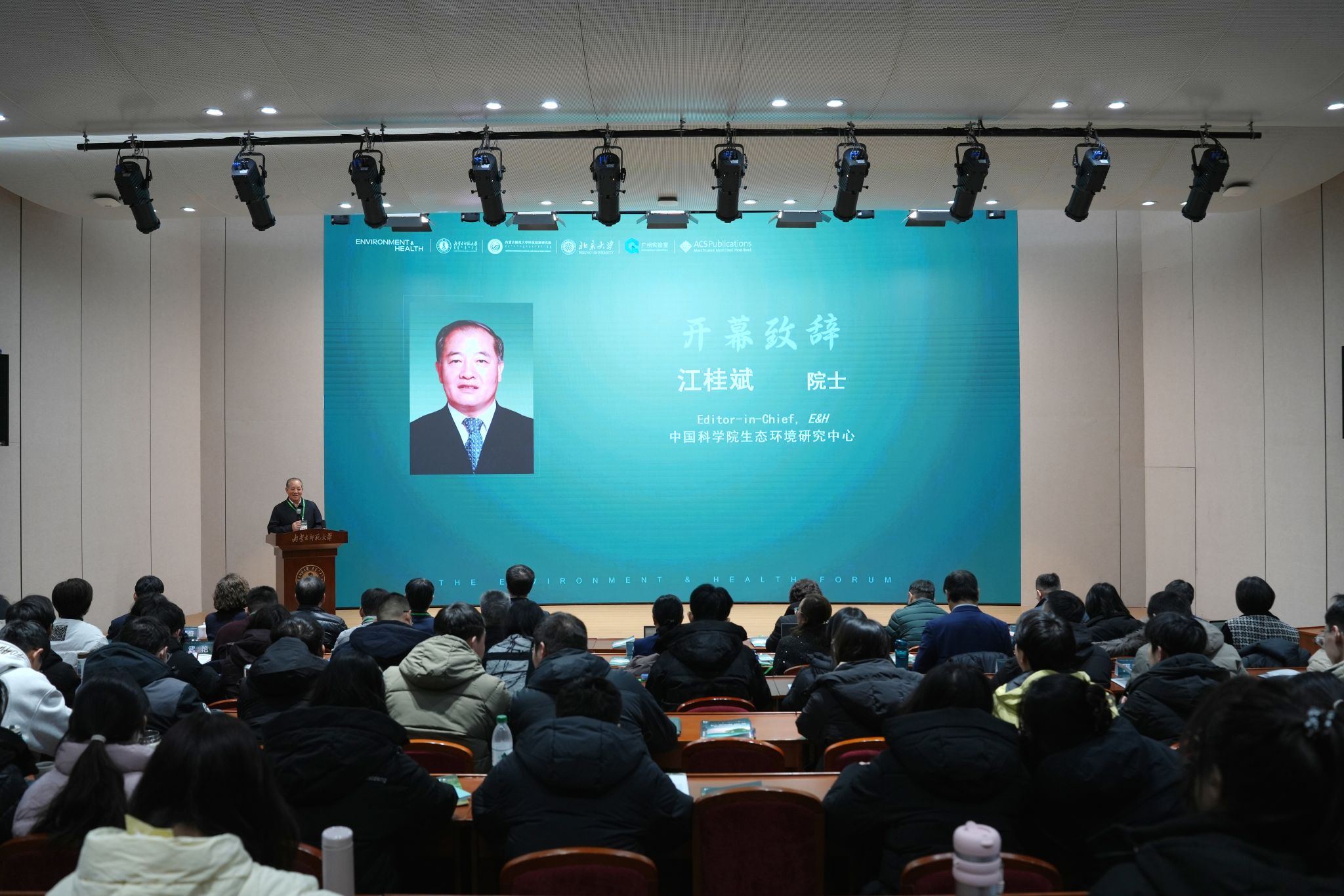 江桂斌在致辞中介绍了环境健康领域的重要学术平台——《Environment & Health》(E&H)期刊的办刊理念和快速发展,并强调,随着环境与健康领域的多学科交叉研究日益深入,国内外知名学术出版机构均加大了对环境健康研究的关注与支持力度,全球科学界正共同致力于深入探索空气污染对人体呼吸系统、心血管系统及神经系统等的具体影响机制,旨在为实施精准环境健康风险防控提供坚实的科学依据。面向未来,要积极响应并践行“健康优先”的发展理念,着力加强以健康效应为导向的科学研究、技术开发等工作,积极推动环境健康研究向健康风险管理转型,以期更好地服务于国家及地方产业的可持续发展和公众健康的有效保护。