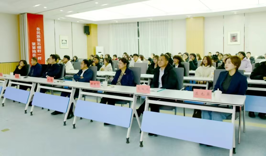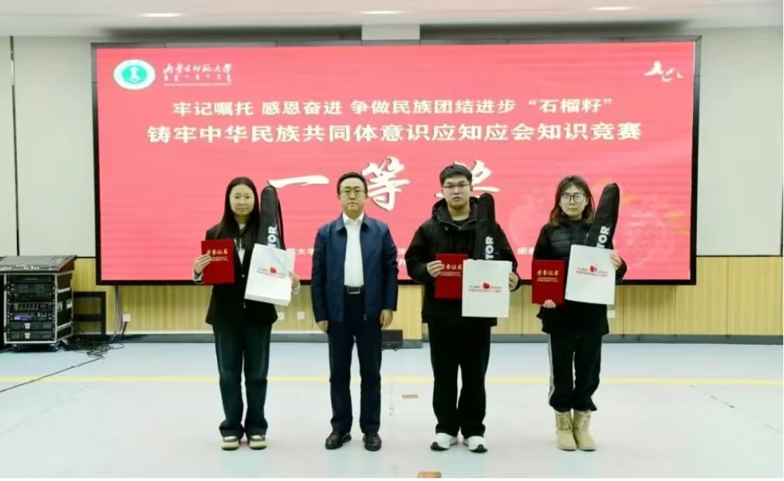 本网讯 为深入学习宣传贯彻党的二十大和二十届三中全会精神,贯彻好习近平总书记关于加强和改进民族工作的重要思想,落实好习近平总书记在全国民族团结进步表彰大会上的重要讲话精神,进一步推动学校铸牢中华民族共同体意识教育有形有效、走深走实,12月15日下午,beat365在线唯一官网“牢记嘱托、感恩奋进,争做民族团结进步‘石榴籽’”——铸牢中华民族共同体意识应知应会知识竞赛决赛在盛乐校区学生事务中心多功能报告厅精彩开赛。党委副书记斯钦及相关部门负责同志到场观摩竞赛。