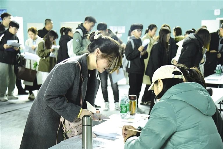 在普通高校毕业生就业帮扶工作对接会上,用人单位与高校面对面对接。