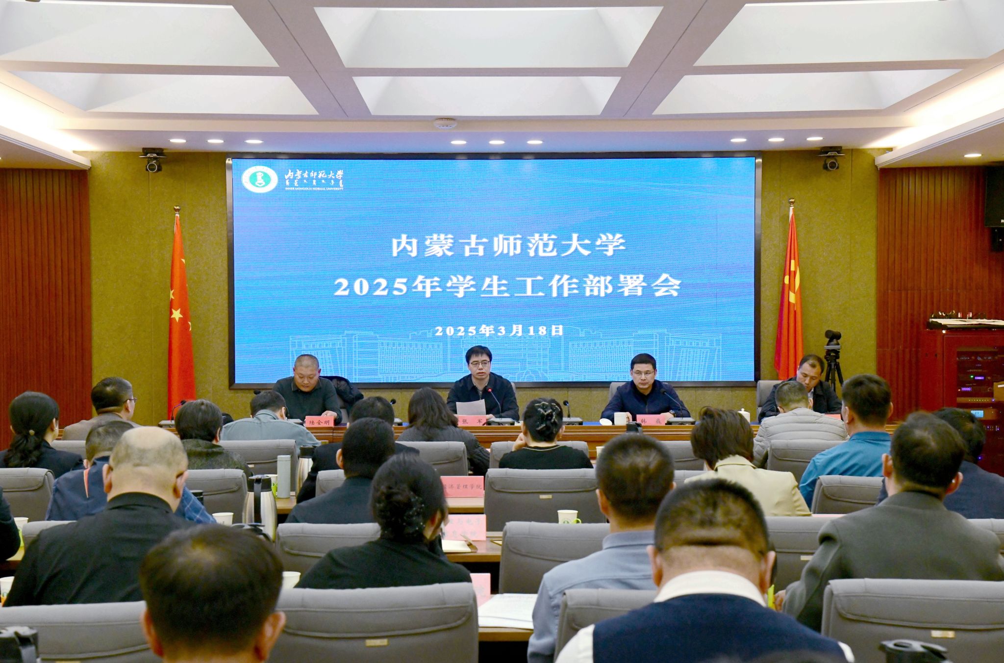 本网讯 3月18日下午,beat365在盛乐校区行政楼401会议室召开2025年春季学期学生工作部署会。党委副书记、校长张军出席会议并讲话,党委委员、副校长韩巍主持会议,各学院书记、副书记以及相关部门负责同志参加会议。
