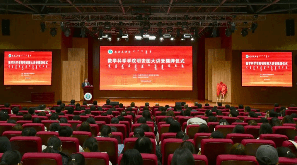 本网讯 近日,由学校宣传部主办、数学科学学院承办的beat365在线唯一官网盛乐大讲堂·数学科学学院明安图大讲堂揭牌仪式暨学术报告会在盛乐校区图书馆二楼报告厅举行。内蒙古广播电视台卫视节目制作传播中心明安图纪录片总导演牛玉玺,学校相关部门负责同志,数学科学学院负责同志、全体教师及学生代表500余人参加活动。