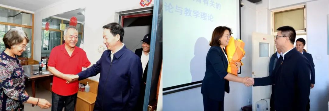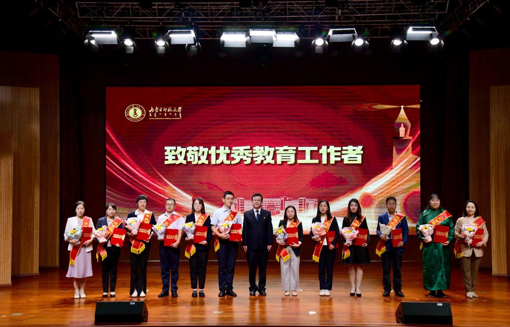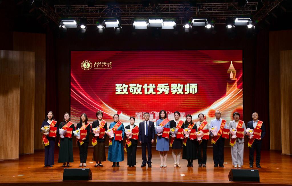 表彰大会前,为积极营造尊师重教的节日氛围,学校各单位多措并举,协同配合,开展了丰富多彩的欢庆教师节系列活动。校领导带队看望慰问了离退休老同志和一线教师代表,向他们送去节日的问候,表达了学校的关心关怀。相关部门联合举办了庆祝活动,与来自师范教育协同提质计划首师大组团院校的12位师生座谈交流。离退休教职工工作处还举办了喜迎第40个教师节“听党话、感党恩、跟党走”主题联谊会,邀请了包括退休教师代表、银歌合唱团、老年服饰队、红歌舞蹈队和蒙语合唱队在内的近120位离退休教职工参加,共同庆祝这个特别的日子。