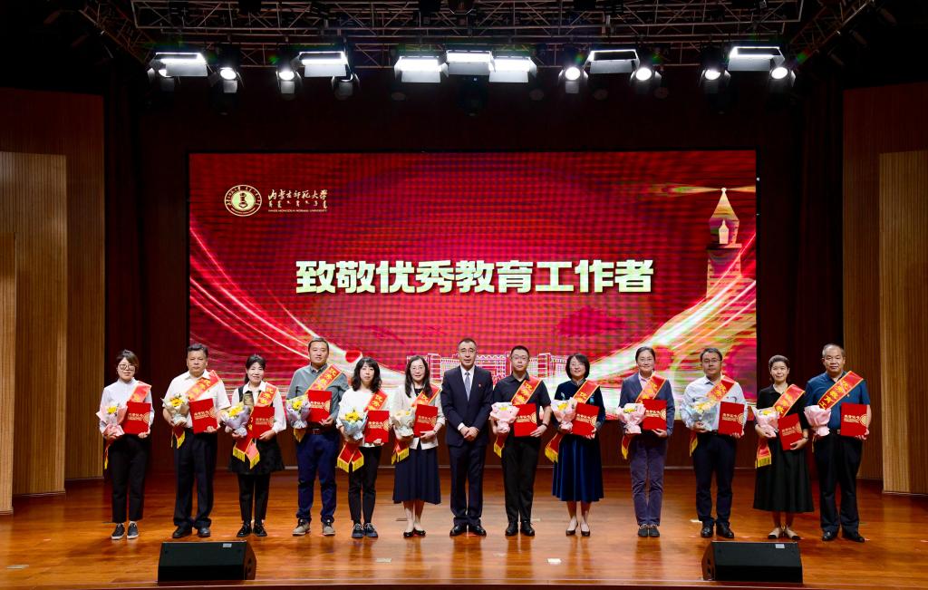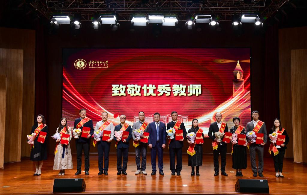 李树林代表学校向全体教师和教育工作者致以节日的问候,向所有受到表彰的教师表示祝贺,向光荣退休和从教三十年的教师表示衷心感谢并致以崇高敬意,向新入职的教师表示热烈欢迎。他说,教师是立教之本、兴教之源。党的十八大以来,以习近平同志为核心的党中央站在党和国家事业发展薪火相传、后继有人的高度,把教师队伍建设摆在极端重要的战略位置,作为建设教育强国最重要的基础工作来抓,出台一系列改革政策和支持举措,推动教师队伍整体面貌发生根本性、格局性变化。我们要坚持把办好师范教育作为第一职责、最大特色、核心优势,紧扣新时代师范教育使命,革新教育理念,深化教育实践,以教育家精神引领推进高素质专业化教师队伍建设,提升教师教书育人能力,全面提高人才培养质量,为构建高质量教育体系、办好人民满意的师范大学,写好“强国建设,教育何为”的“内师答卷”。