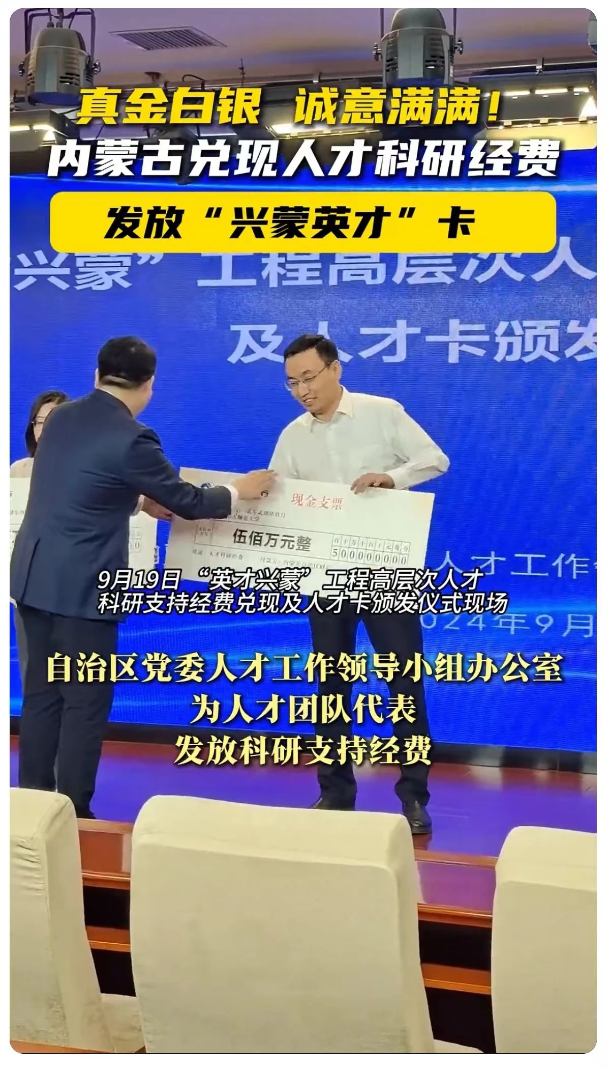 本网讯9月19日,内蒙古自治区政府新闻办召开新闻发布会,通报了第十二届内蒙古“英才兴蒙”高层次人才合作交流会暨人才创新创业周活动将于9月23日至30日在内蒙古举办。会后举行了“英才兴蒙”工程高层次人才科研支持经费兑现及人才卡颁发仪式,为beat365党委委员、副校长公茂果团队发放当年度科研支持经费500万元,为三类人才代表、beat365蒙古学学院院长满全发放人才卡。