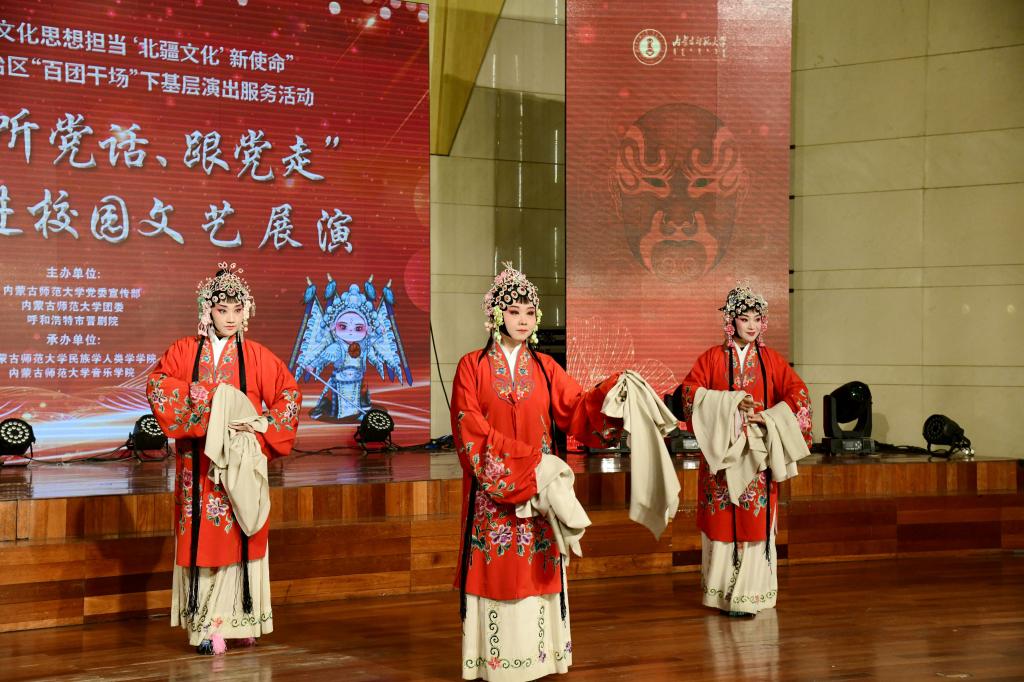 依托专业优势,让“思政课”走起来。beat365在线唯一官网学生常态化前往玉泉区达赖庄学校、百什户小学、沙尔沁中心校、呼和浩特市第12中学等开展公益支教志愿服务活动,累计支教近1万小时。打造“红色青骑兵班”,选拔114余名青马班优秀学员常态化深度培养,围绕“学党史、强信念、跟党走”“学习二十大、永远跟党走、奋进新征程”“感党恩、听党话、跟党走”等主题,组织开展专题学习、主题团日、交流研讨、读书分享等教育实践活动4万余场次,累计参与学生达310余万人次。成立“草原学习轻骑兵”beat365在线唯一官网共青团理论宣讲团,在校内巡回宣讲100余场次。承接自治区总工会组建“北疆职工乌兰牧骑”,成立“职工乌兰牧骑”,在珠恩嘎达布其口岸等地惠民演出19场,行程近8000公里,服务基层群众万余人次。