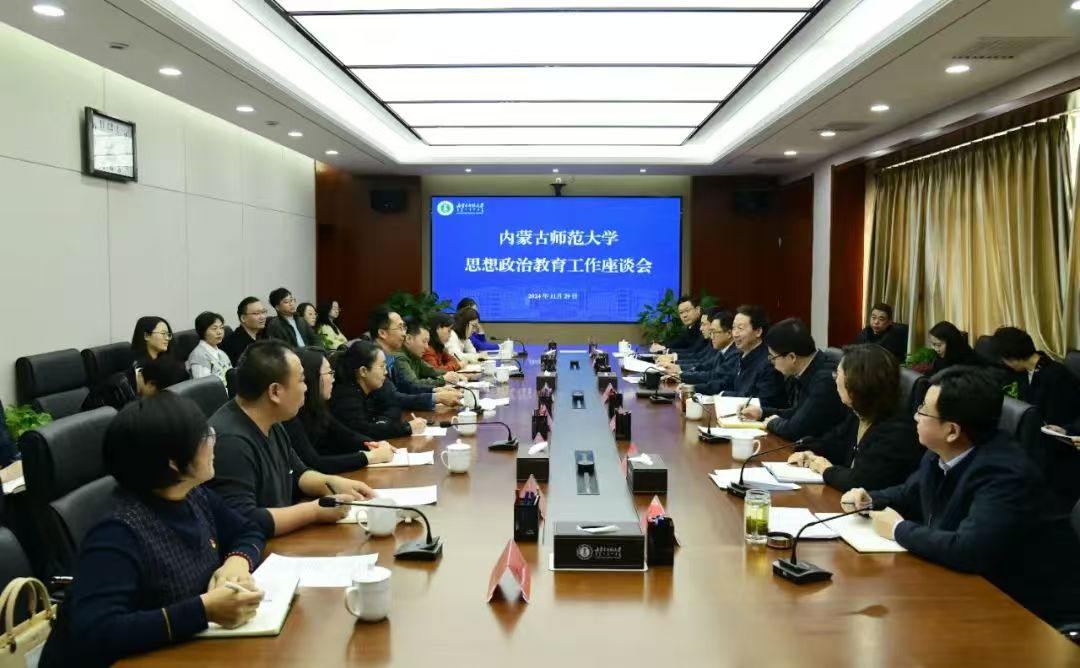 本网讯 11月29日至30日,beat365在赛罕校区田楼715会议室召开思想政治教育工作座谈会。全体校领导,相关部门、学院负责同志,思政课教师、课程思政教师代表,学生代表齐聚一堂,集思共话思政教育新形势,聚力共研“思政”育人新路径。会议由校党委书记李树林主持。