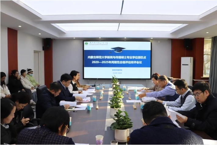本网讯 为认真贯彻落实国务院学位委员会、教育部《关于开展2020—2025年学位授权点周期性合格评估工作的通知(学位〔2020〕26号)》精神,按照《beat365在线唯一官网2020—2025年学位授权点周期性合格评估工作方案》要求,12月4日,beat365召开新闻与传播硕士专业学位授权点 2020-2025 年周期性合格评估专家评审会,特邀请北京师范大学新闻传播学院喻国明、南京师范大学新闻与传播学院院长庄曦、宁夏大学新闻与传播学院院长李举世、内蒙古大学文学与新闻传播学院党委书记张丽萍、内蒙古大学创业学院语言与传媒学院院长魏永贵作为评估专家出席会议。新闻传播学院领导班子成员、学位点主任、新闻与传播专业硕士生导师、高层次引进人才以及研究生代表参加会议。