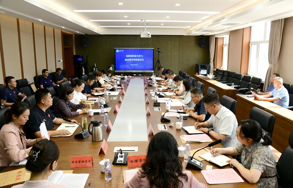 会议强调,招生就业处要协同各部门,联合教务、团学以“内核过硬、融入全程、整体优化”为工作原则,将生涯规划与就业指导融入全校思政大课堂,推动就业与思政教育、专业教育、通识教育和交叉培养深度融合,使课程教学、校内实践、社会实践,一、二、三课堂协同落实就业育人理念,建成“覆盖全员、分时分段、各有侧重、贯穿全程”的就业指导课程体系,一体化推进专业、学业、就业、事业“四业”教育。同时,组织建设好以学院分管就业工作副书记、副院长和辅导员、生涯咨询师为主体,以职业生涯规划和就业指导课程教师为支撑,以思政课骨干教师、心理教师、专业教师为协同的就业指导队伍,配齐建强专兼职师资队伍。
