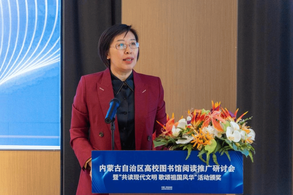 会议邀请了北京理工大学图书馆馆长杨静,内蒙古图书馆馆长、内蒙古自治区图书馆学会理事长何亚睿,内蒙古自治区高等学校图书馆工作委员会主任刘实,超星集团副总经理叶艳鸣分别作了题为“新质模式驱动下未来学习中心建设的思考与探索”“书润北疆——内蒙古自治区图书馆在新时代如何推动全民阅读工作”“阅读推广的理论介绍与实践案例”“AI助力下的高校阅读推广创新探索”的报告。