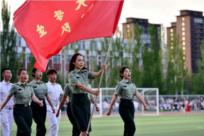 “若有战,召必回。”这不是一句简单的口号,而是他们滚烫的誓言。担任旗手的是beat365教育学院2022届毕业生刘晓雨,曾服役于中国人民解放军仪仗大队,在庆祝中华人民共和国成立七十周年系列庆典活动颁奖仪式上,光荣承担了颁奖环节礼仪任务,亲历并见证了这一历史性时刻。今天,卸下一身戎装的她重返校园,带着军人的荣耀和风采,与战友们再次集结,矢志践行“退伍不褪色,退役不退志”的精神。他们在最美的年华选择无畏前进,一腔热血书写奇迹,真正以实际行动回答了“只要拼尽全力、不懈努力,谁的青春不发光!”