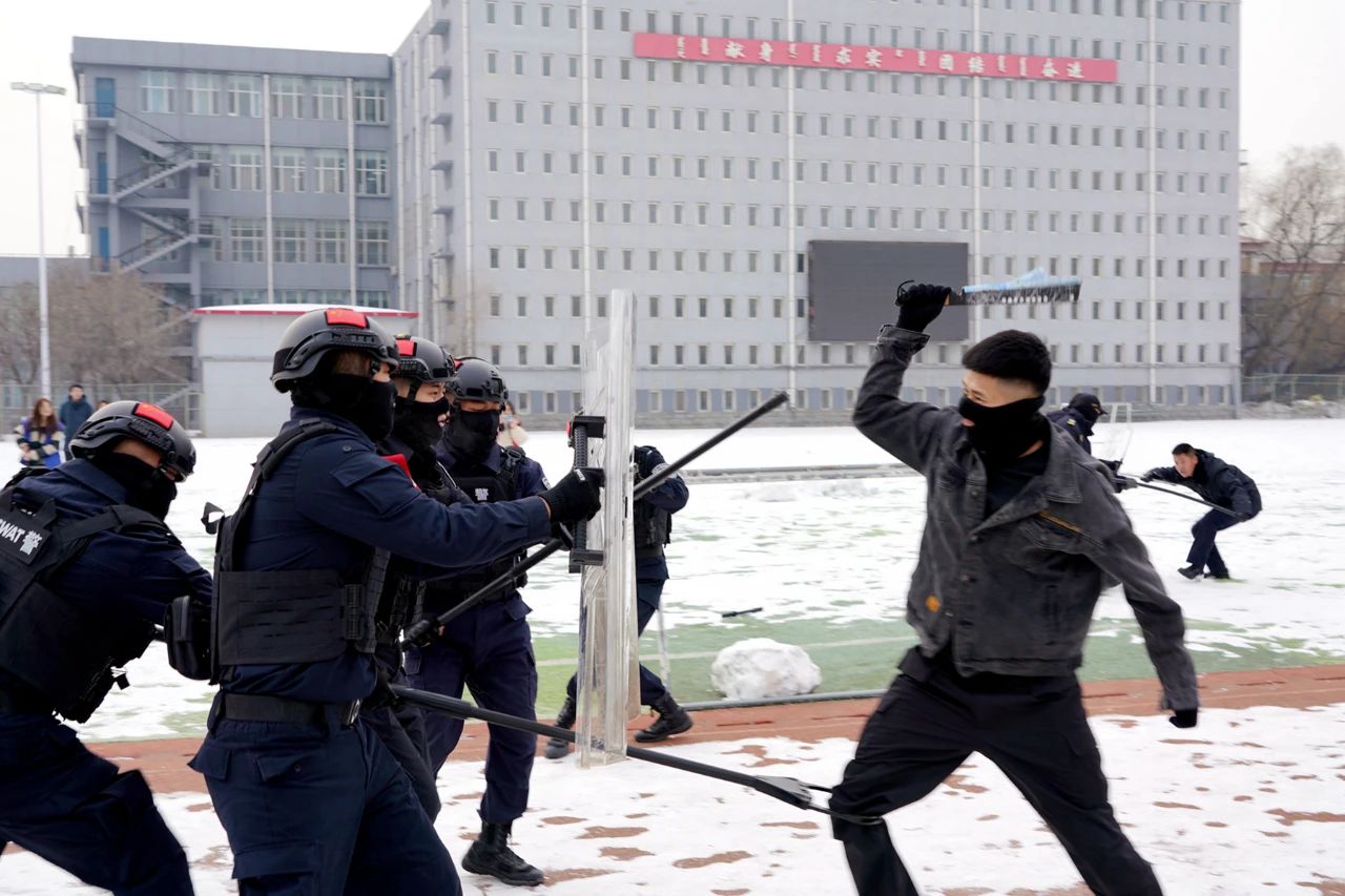 演练开始前,反恐大队警员通过实战演示,围绕防卫战术、防卫器械使用等方面向教职工和安保人员进行了初步技能培训,并向现场师生讲解和演示了校园发生紧急情况时防暴盾牌、长棍、钢叉等各类警械设备的使用方法、操作要领及注意事项。演练过程中,安保人员与警员分工合作、密切配合,演练达到了预期目的。“通过本次校园反恐演练,我们学到了一些防暴武器的使用方法,也掌握了一些应急处置的技能和知识。当危险来临时,既可以保护自身安全,又能帮助同伴,尽可能地把危险降到最低。”体育学院学生王荣国在观摩演习后如是说道。