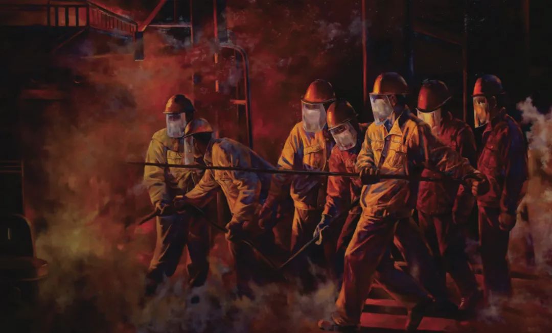 长海《铁水奔流》油画