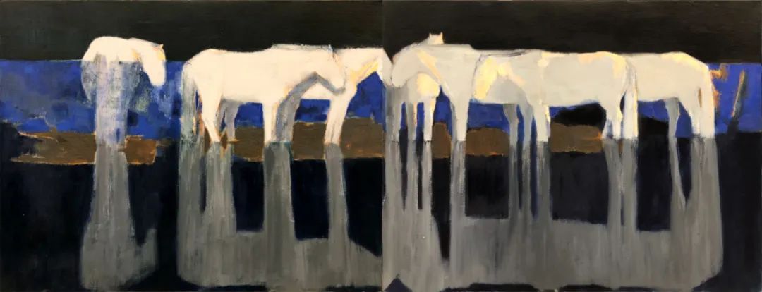 胡日查《马群系列一》油画