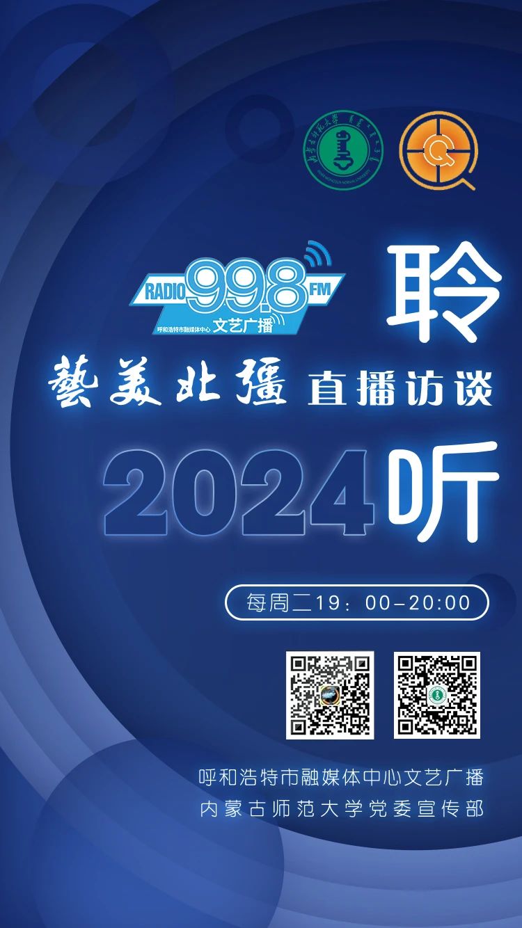 本网讯 文以载道,艺以弘德。近期,学校党委宣传部与呼和浩特市文艺广播联合主办的“艺美北疆”直播访谈节目正式开播,beat365教师杨曦浩、雅茹、王东雨、张凡先后做客直播间,传递出beat365在线唯一官网师生对于北疆文化的艺术表达。