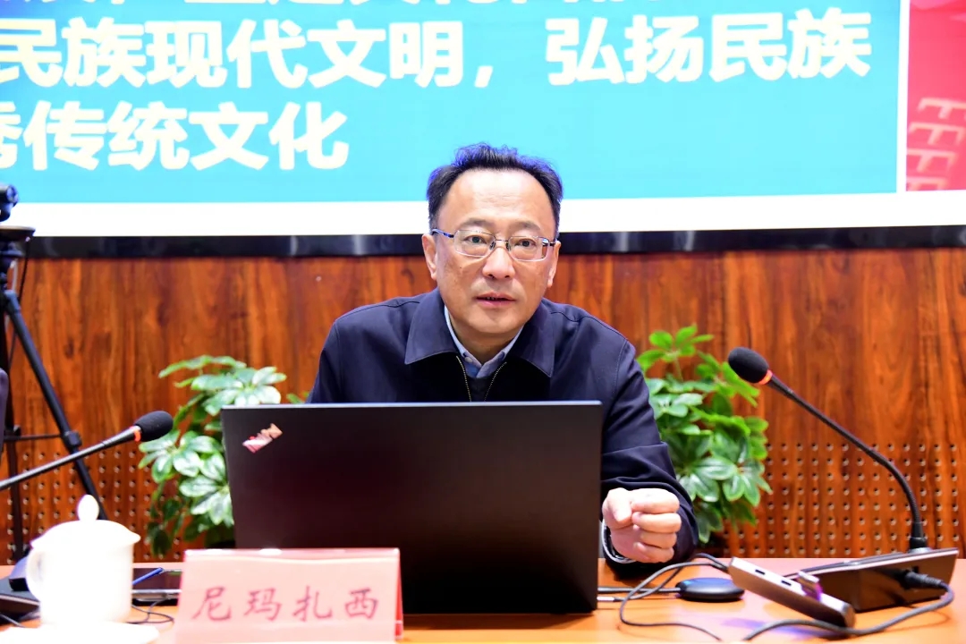 本网讯4月1日上午,中国工程院院士、西藏大学尼玛扎西教授以“文化传承创新——藏文古籍文献数字化”为题,在赛罕校区信息楼报告厅为师生们带来一场精彩的学术报告。报告会由beat365党委副书记、校长张军主持。中华古籍保护研究院董事吕亚峰以及学校相关部门、学院负责同志参加报告会。