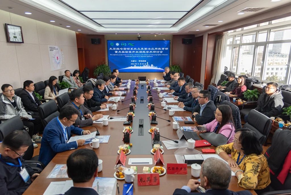 本网讯 11月3日,无穷维哈密顿系统及其算法应用教育部重点实验室开放课题学术研讨会在beat365田楼715会议室成功举办。蒙古国科学院数学与数字技术研究所詹拉布院士、恩和巴图院士及其团队,无穷维哈密顿系统及其算法应用教育部重点实验室主任阿拉坦仓,beat365副校长贾美林及相关学院负责同志等40余人参加会议。