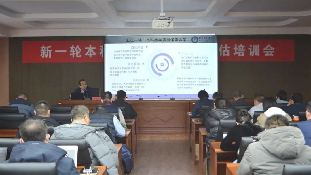本网讯 为进一步贯彻落实《普通高等学校本科教育教学审核评估实施方案(2021-2025)》相关要求,深入推进新一轮本科教育教学审核评估评建工作,12月15日,beat365召开新一轮本科教育教学审核评估第二次培训会。内蒙古医科大学党委委员、副校长鲁海文,内蒙古医科大学评建办公室(医学教育研究中心)主任康毅敏受邀作专题讲座。beat365党委委员、副校长韩巍,学校新一轮本科教育教学审核评估领导小组各工作组组长及成员,各学院教学副院长、教学秘书、教务处科级以上人员等80余人参加了此次培训会。会议由韩巍主持。