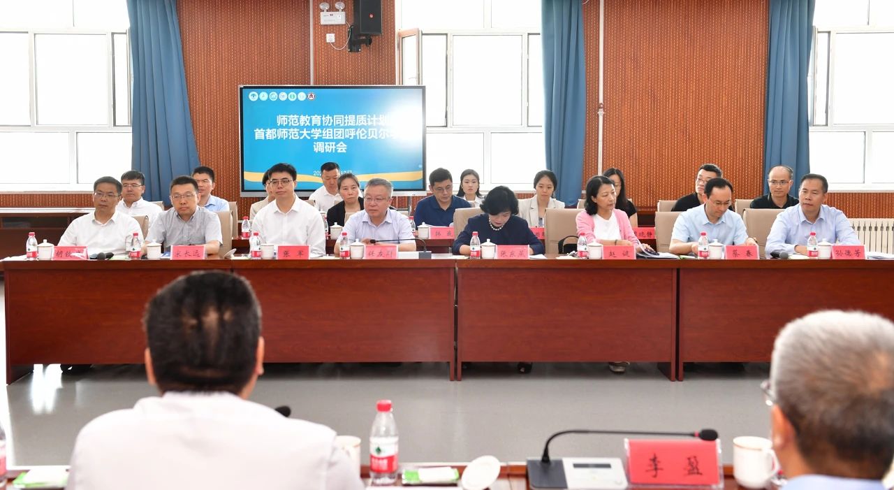 本网讯 近日,教育部教师工作司司长任友群、师范教育协同提质计划专家工作组、首都师范大学组团“1+M”院校负责人一行赴呼伦贝尔学院考察调研。自治区党委教育工委委员、教育厅党组成员、副厅长李盈,自治区教育厅教师工作处处长王俊威陪同调研。beat365党委副书记、校长张军,党委委员、副校长韩巍及教务处、质量监测与评估中心负责同志等参加调研。