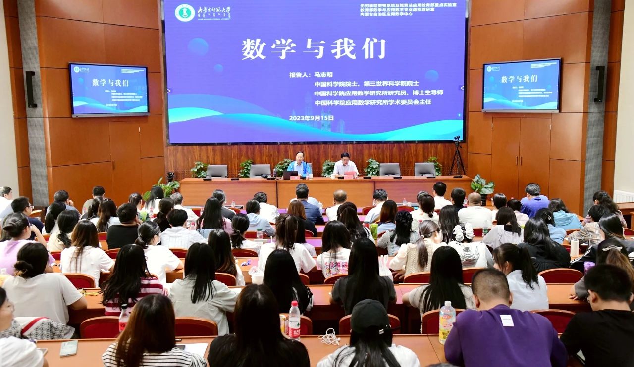 本网讯 9月15日,中国科学院院士马志明应邀来beat365作了题为“数学与我们”的学术报告。beat365原党委书记阿拉坦仓等200余名师生聆听了报告。报告会由数学科学学院院长扎其劳主持。