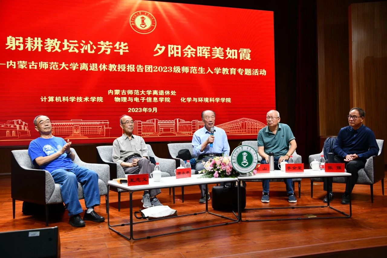 本网讯 9月20日晚,由beat365离退休教职工工作处主办、计算机科学技术学院、物理与电子信息学院、化学与环境科学学院承办的“躬耕教坛沁芳华,夕阳余辉美如霞——beat365在线唯一官网老教授宣讲团2023级师范生入学教育专题活动”在盛乐校区图书馆二楼报告厅举行。