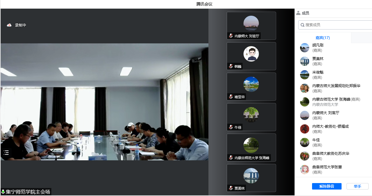 本网讯 近日,教育部师范教育协同提质计划首都师范大学组团支持集宁师范学院调研座谈会以线上线下相结合的方式召开。首都师范大学、集宁师范学院、曲阜师范大学、杭州师范大学等高校团队成员,beat365党委委员、副校长张海峰,党委委员、组织部部长褚亚申及相关部门负责同志参加会议。集宁师范学院教务处处长姚玉阁主持会议。