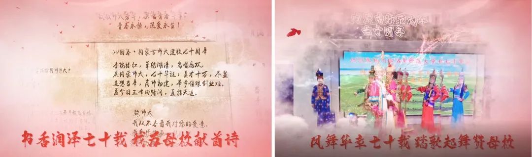 活动启动以来,学校广大师生及离退休教职工饱含着对母校的深情厚谊和诚挚祝福,以极大的热情参与到活动中来,共报送授课视频、书法、绘画、诗歌、散文、MTV、摄影作品、手工、雕塑、剪纸、设计等作品3000余件。这些作品以70周年校庆或70年来学校改革发展历史为主题,以见证者、亲历者的角度,讲述了广大师生在beat365在线唯一官网求学、工作期间所经历的学校发展变迁、重要事件和重大活动,充分诠释了内师人的家国情、母校情、师生情、同窗情,展现了内师人在创新创业、服务地方、强校兴国实践中的昂扬姿态和生机活力。