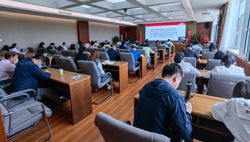 本网讯 5月27日上午,党委副书记高云峰为党政机关党委全体党员作了题为“学习贯彻中央民族工作会议精神,铸牢中华民族共同体意识”的专题讲座。