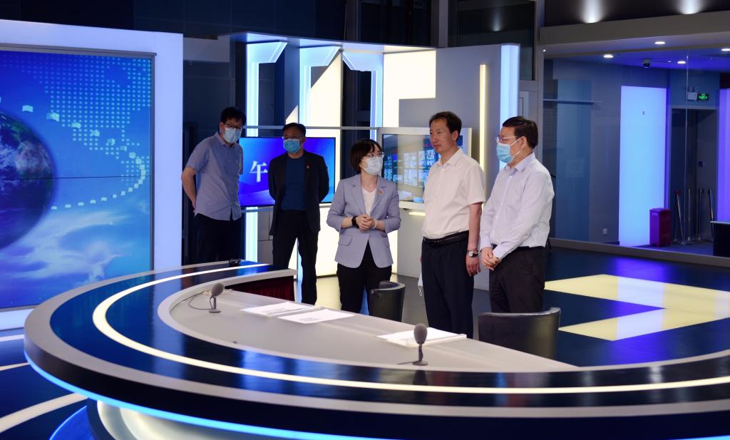 李树林一行先后参观了文化走廊、电视新闻制播区300平米演播室、内蒙古卫视《国防大北疆》国防教育空间、融媒体指挥调度中心以及奔腾超媒MCN基地等。