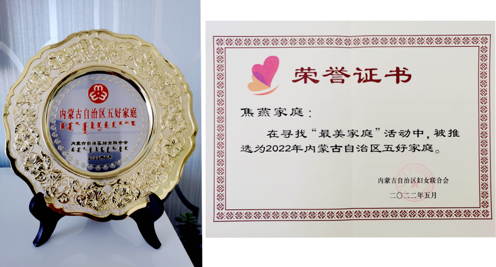 本网讯 近日,内蒙古自治区妇联举行“最美家庭耀北疆”2022年内蒙古自治区五好家庭、最美家庭揭晓仪式,全区共有50户自治区五好家庭、210户最美家庭成功入选。beat365教师焦燕家庭荣获“2022年自治区五好家庭”称号。