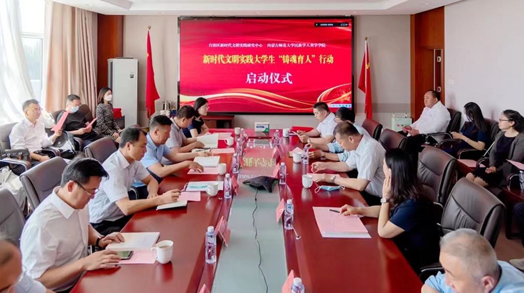 本网讯 为深入贯彻落实党中央关于深化拓展新时代文明实践中心工作的部署要求,进一步推进“新时代文明实践进校园”工作,提升高校参与和服务新时代文明实践志愿服务工作的水平,引领高校新时代文明实践中心工作,6月10日上午,内蒙古自治区新时代文明实践研究中心与民族学人类学学院合作开展的新时代文明实践大学生“铸魂育人”行动项目正式启动。自治区党委宣传部新时代文明实践与志愿服务处一级调研员李强出席仪式,并与自治区新时代文明实践研究中心、民族学人类学学院主要负责同志共同启动项目。学校相关部门有关负责同志参加仪式。