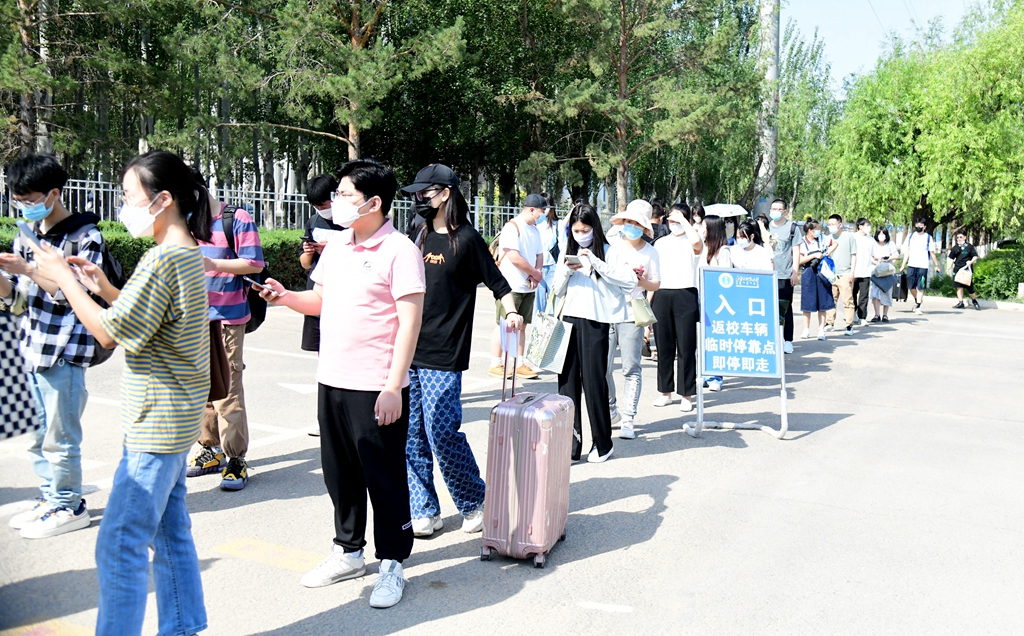 连日来,学校仔细对学生公寓、餐厅、浴室等校园场所进行消杀,翘首以盼同学们的到来。入校通道有专人核验学生48小时核酸检测证明、行程码、健康码,并依次进行体温检测,对行李箱进行集中消杀等。入校后,学校安排了专门的摆渡车辆运送学生到宿舍,并在等候区放置了绿豆汤等消暑饮品。“一走进校门感觉太亲切了,学校的安排特别暖心。能在毕业前和老师、同学们再见上一面很开心,但对于即将结束的大学生活也有很多不舍。”旅游学院大四毕业生金青春说道。